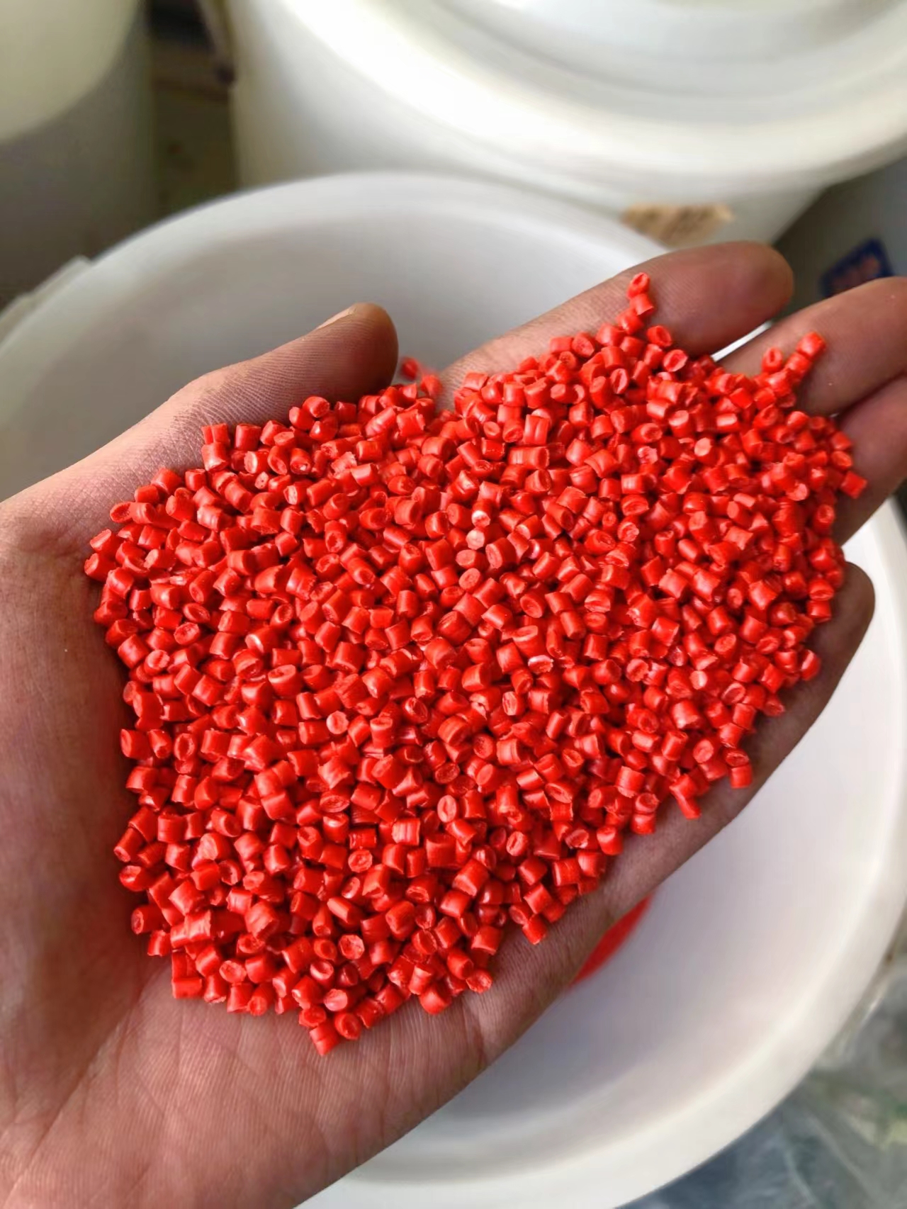 大红色PP,熔指20左右,冲击6个,比重0.95.高流动性,无黑点料花,底料稳定。现货供应。适用于日用品注塑,家电外壳,塑料盆桶 水果框 可拉丝做塑料扫把。
