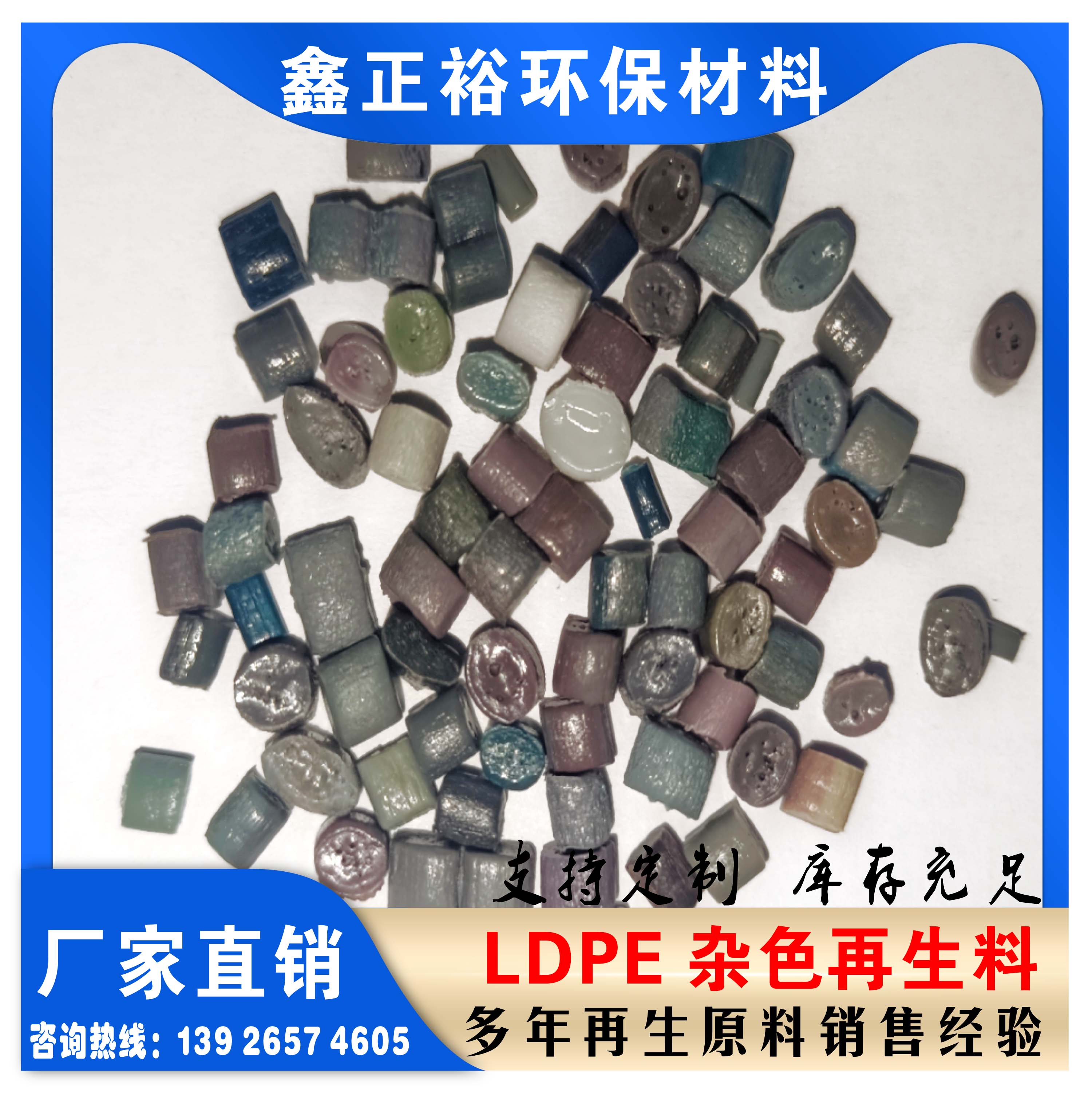 LDPE颗粒来源于无油墨的杂色边条料,干净,无异味